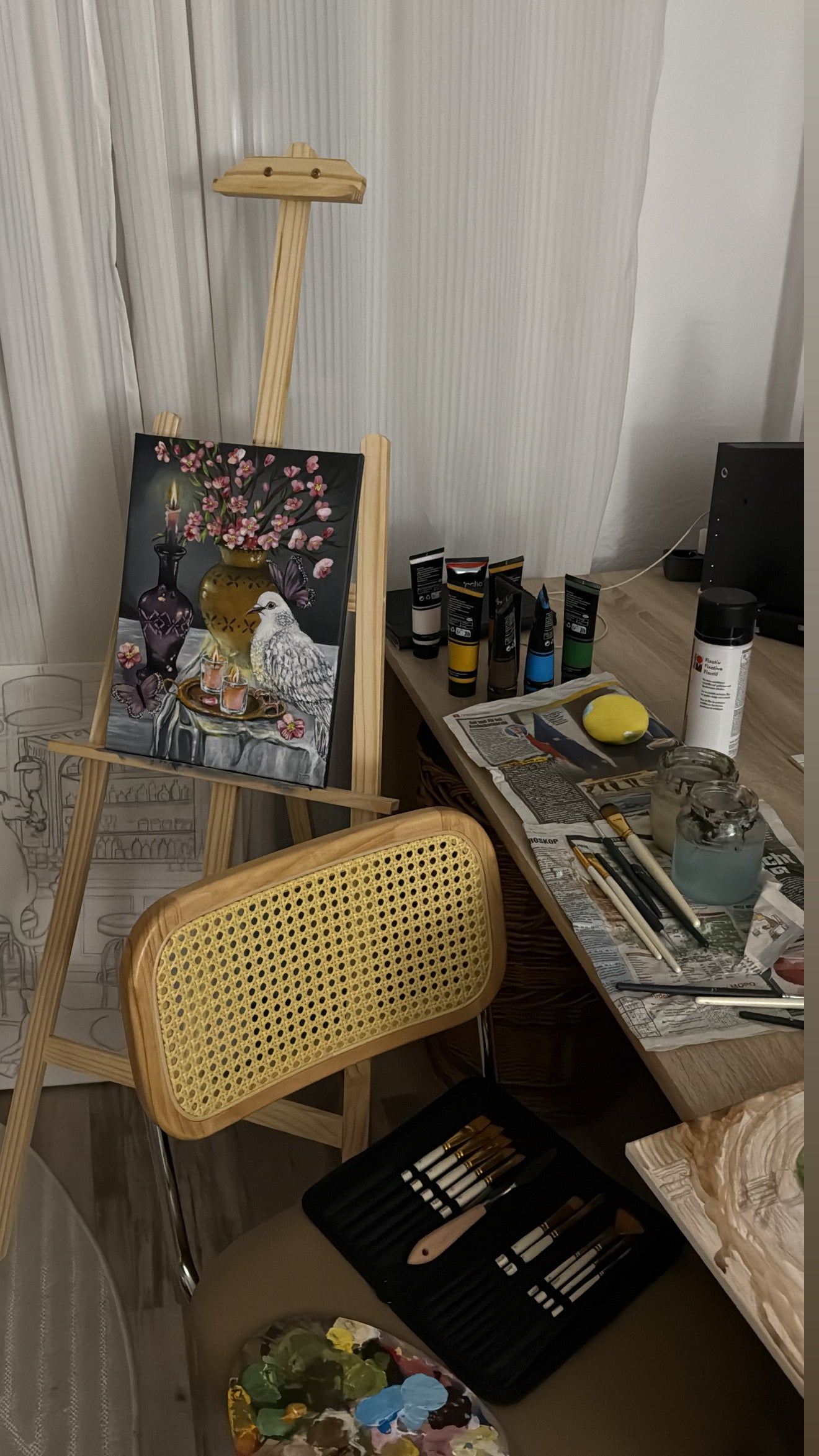 Für individuelle Auftragsarbeiten biete ich dir verschiedene Techniken an, damit dein Kunstwerk genau die Stimmung trägt, die du dir wünschst. Du kannst zwischen farbigen oder schwarz-weiß Arbeiten wählen – jeweils in meinem charakteristischen, verträumten Stil. Überleg dir ob es ein Gemälde oder eine Zeichnung auf Papier werden soll.